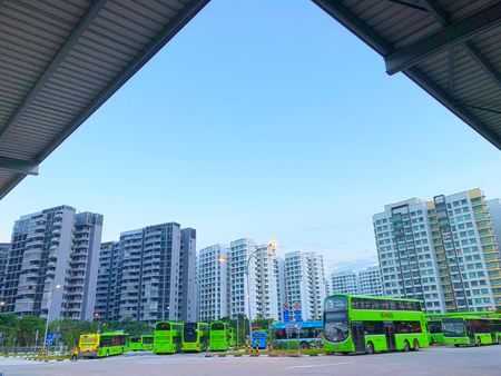 Singapore, 31 August 2018 - Punggol temporary bus interchange at Punggol Central, located adjacent to the Punggol MRT/LRT Station. Go-Ahead Singapore is the anchor operator of this interchange.