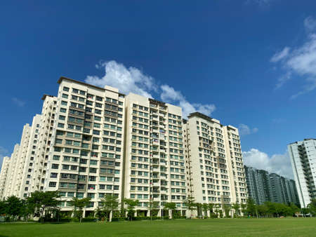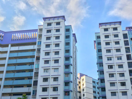 Singapore housing blocks (HDB) under cloudy blue sky
