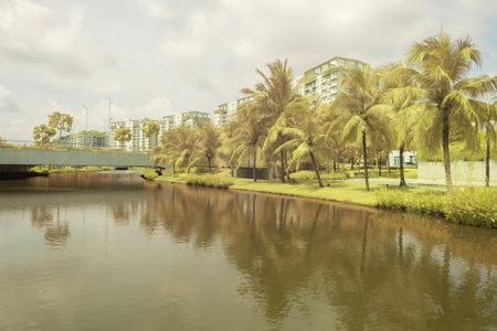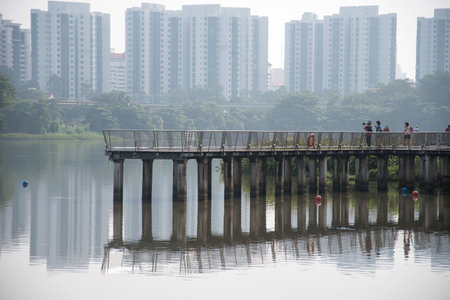 Singapore- 9 Apr, 2022: Scenic view from Bishan-Ang Mo Kio Park in Singapore. It is one of the largest urban parks in central Singapore