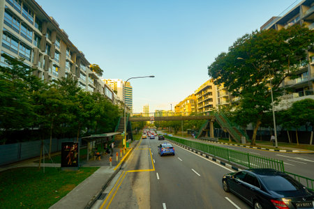 Singapore- 7 May 2024: Observe the Singapore MRT tracks flanked by apartments on both sides