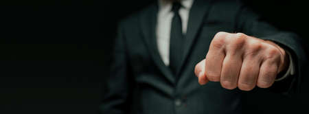 Aggression – portrait of an angry aggressive woman with clenched fists
