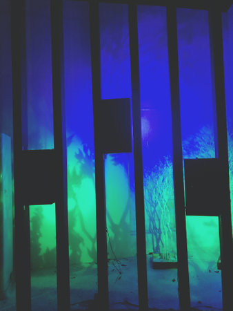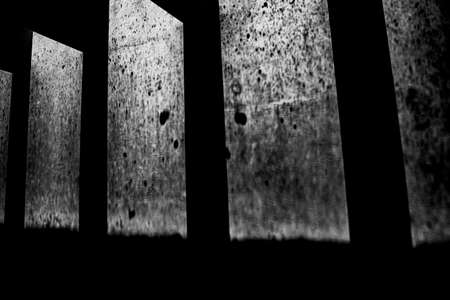 wide angle view of Jail or prison bars being lit up by the sun