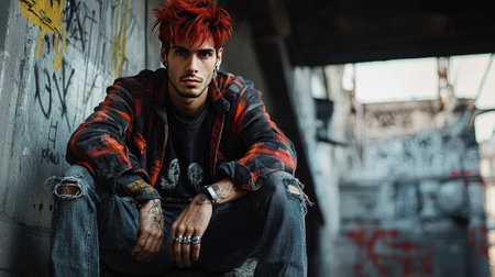 Portrait of a stylish young punk student embracing modern subculture and artistic expression