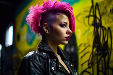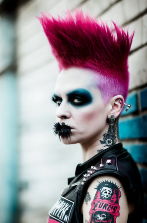 Rebel Woman with a Mohawk and Studded Leather Jacket Staring Defiantly into the Camera