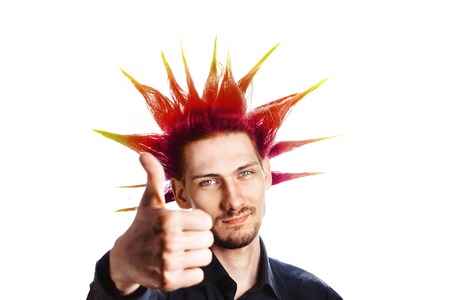 Portrait of a cool young man with colorful mohawk hair