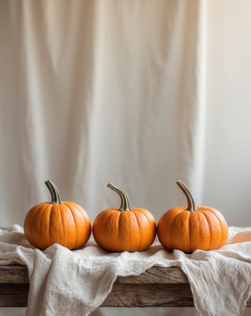 Orange pumpkins arranged on a soft beige background, creating a warm autumn atmosphere Ideal for fall decorations and seasonal themes Perfect for harvest related designs