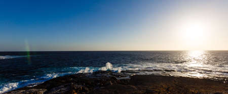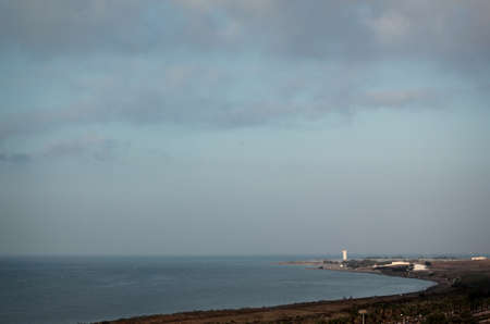 ocean coast landscape with lighthouse and blue sky copy space, Tenerife -