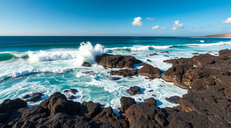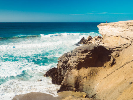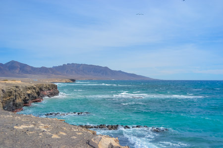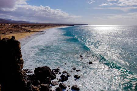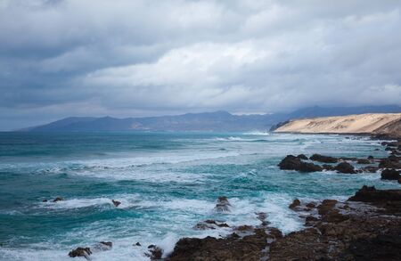 Wild and rugged volcanic coast near Punta Jandia, Fuerteventura, Canary Islands