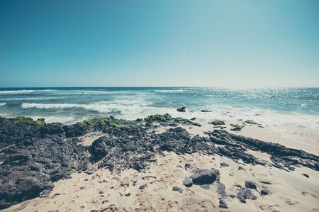 Azure water of Atlantic ocean on Morro Jable beach, Fuerteventura island, Canary Islands, Spain.