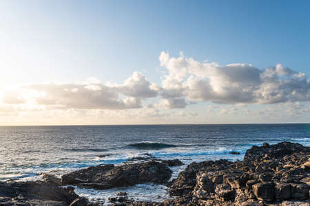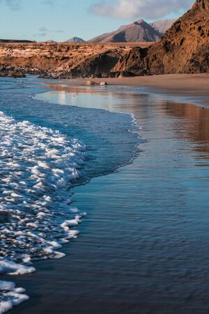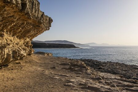 Coastline near El Cotillo village on Fuerteventura island on the sunset in Spain