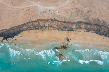 aerial view of coast, flag beach, fuerteventura, canary islands