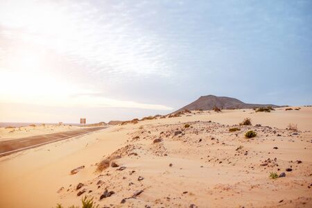 Road through the Corralejo Dunes National Park in Fuerteventura, Canary Islands, Spain