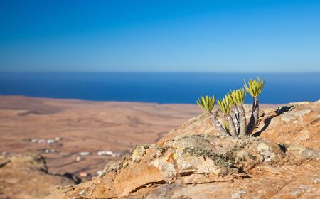 Inland Fuerteventura, small tabaiba (euphorbia) plant on the slope of mount Tindaya