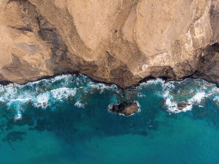 Beautiful aerial shot of turquoise water breaking on rocks in Canary Islands