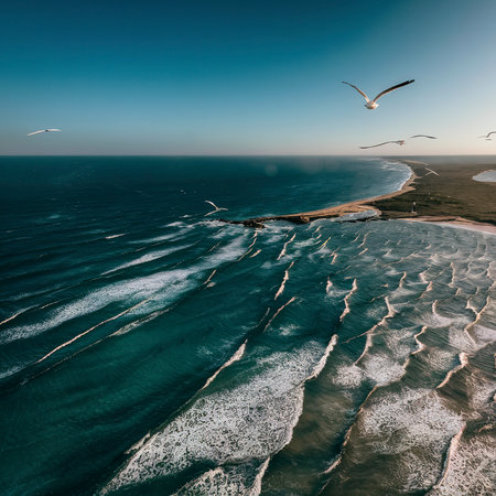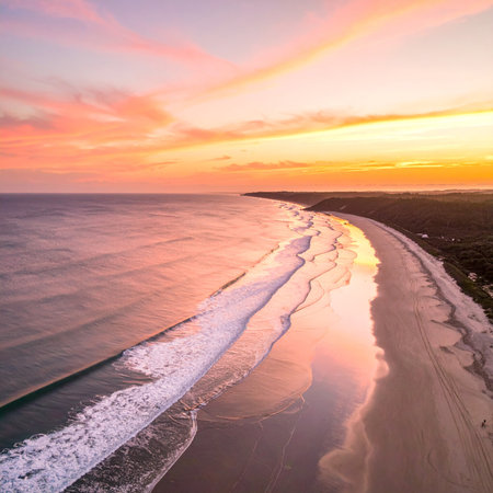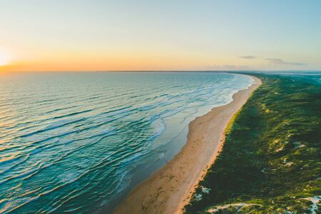 Scenic ocean coastline beach at sunset in Australia - aerial view