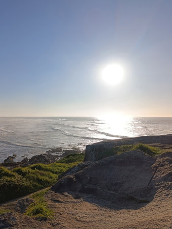 Rocky coast of Atlantic ocean on a sunny day, Portugal.