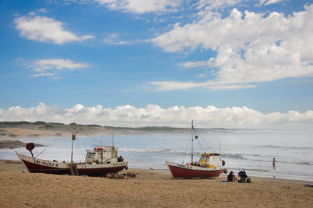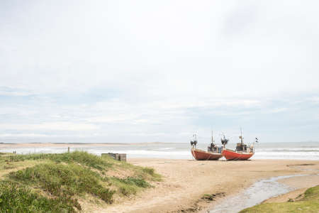 Cabo Polonio, Rocha / Uruguay; Dec 30, 2018: couple of boats on the shore of the beach