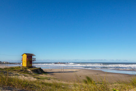 Lifeguard hut on La Pedrera beach resort, Uruguay, South America