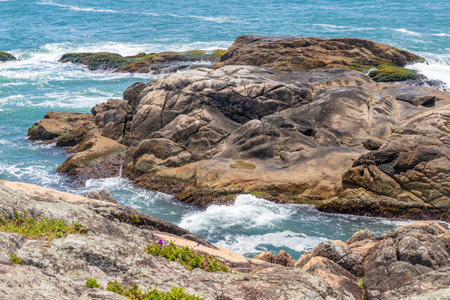 Rocks on the beach at Casqueiro trail, Garopaba, Santa Catarina, Brazil