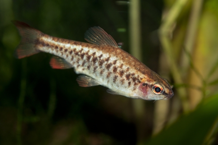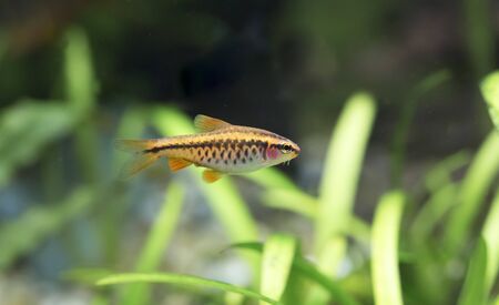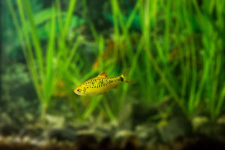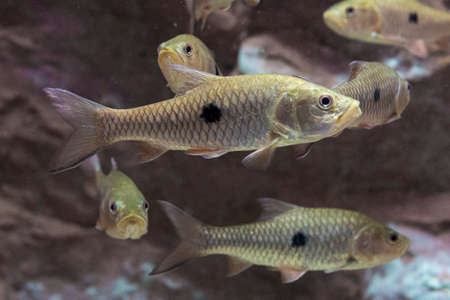 Eye-spot barb fish in aquarium. Wildlife animal.