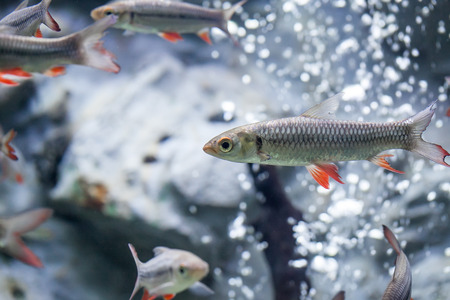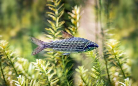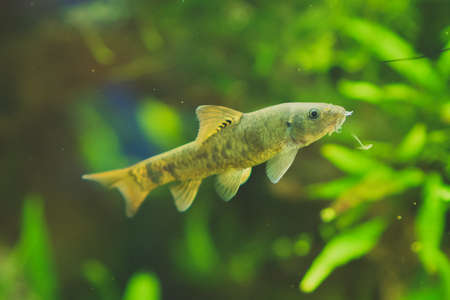 schwanenfeldi fish or Bream barbus in aquarium. Wildlife animal.