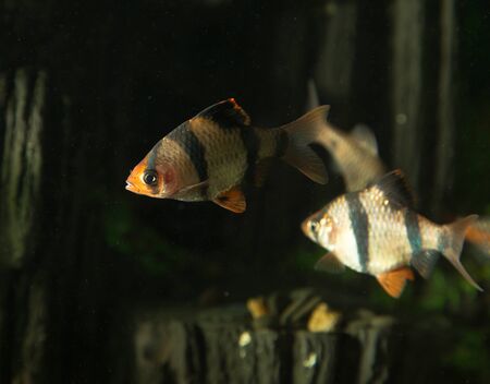 Barb in the aquarium closeup (Puntigrus tetrazona)
