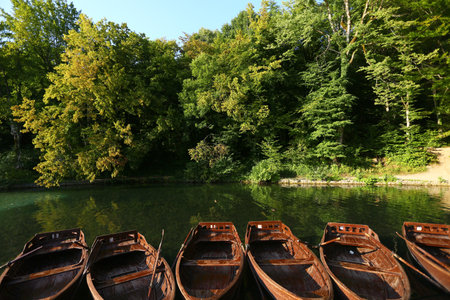 Wooden Boats, Old Town, Neckar River, Tuebingen, Germany