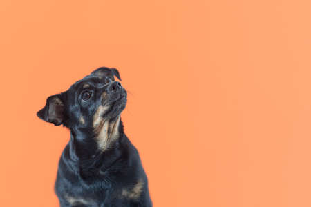 Thoroughbred dog on an orange background. A terrier. holidays and events. Pets. copyspace.
