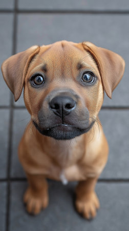 Portrait of a cute Rhodesian Ridgeback puppy looking at the camera