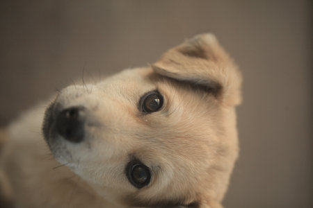 Lovely brown puppy dog portrait looking up with beautiful eyes
