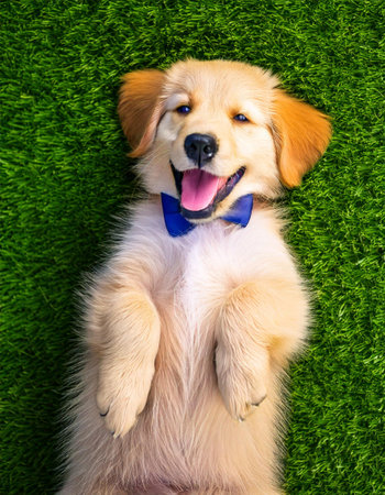 Whimsical wonder: adorable animation brings to life a cute and funny golden retriever puppy in a charming cartoon adventure full of playful antics and heartwarming moments