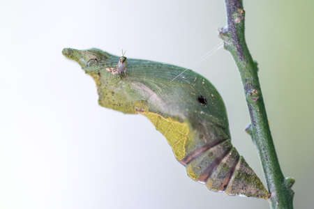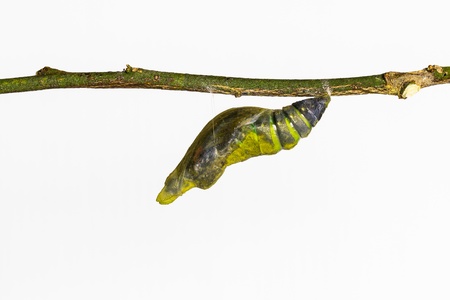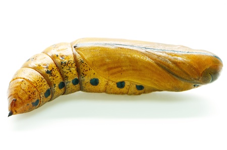 Mature pupa of Common mormon butterfly in white background