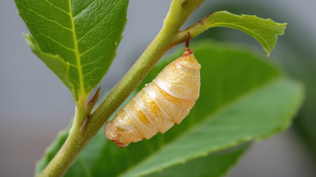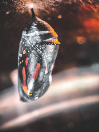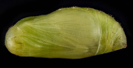 A close-up macro show a butterfly pupa details of body