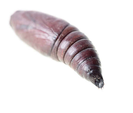 Close-up of a pupa of an insect on a white background. Macro