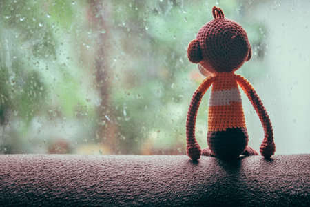 daylight. on a clothesline hanging soft children's toys. they are fixed with a clothespin