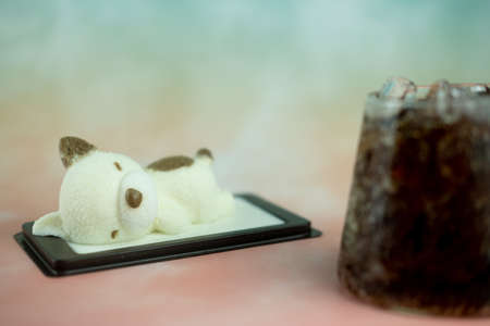 Coconut milk jelly (Wun Kathi) in bear shape served with soft drink. A sweet Thai dessert with cute shape