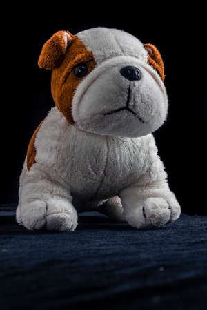 Puppy dog Animal soft toy displayed on shiny black background, kids playing object image