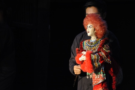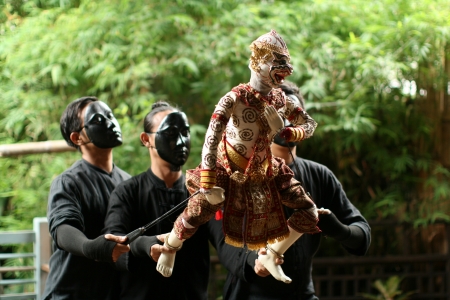 BANGKOK, THAILAND - MAY 1 : The little Thai puppet play requires the synchronized efforts of three puppeteers. They play at Klong Bang Loung on May 1, 2011 in Bangkok Thailand