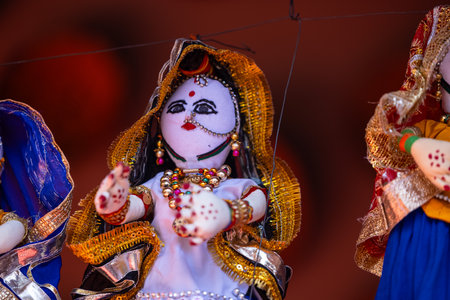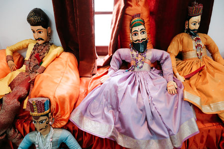 Udaipur, India - December 12, 2017 : Indian traditional dolls at Bagore Ki Haveli