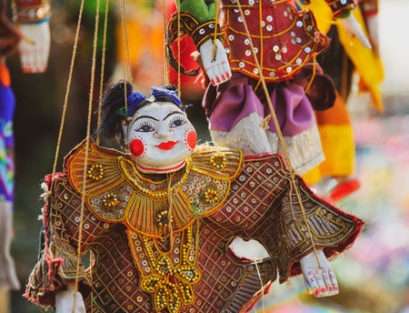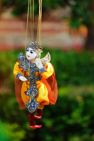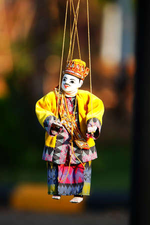 Traditional Burmese puppet for sale at the shop in Bagan, Myanmar. Legend has it that puppetry first appeared in the 11th century of the Bagan Dynasty.