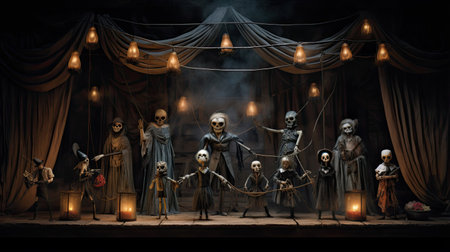 lightweight and colorful puppet costumes waiting for a show, created with generative ai