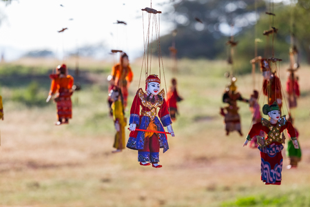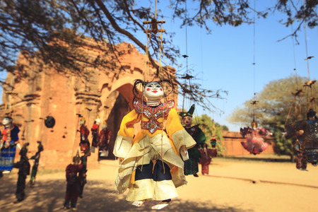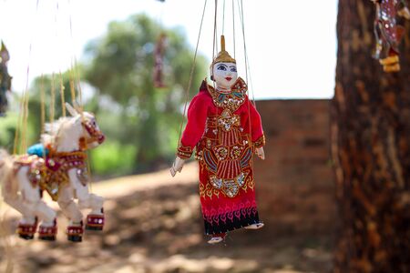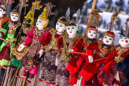 Traditional Burmese puppet for sale at the shop in Bagan, Myanmar. Legend has it that puppetry first appeared in the 11th century of the Bagan Dynasty.