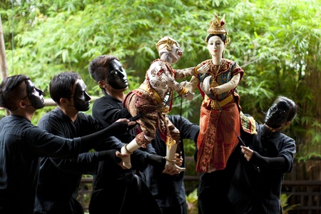 BANGKOK, THAILAND - MAY 1 : The little Thai puppet play requires the synchronized efforts of three puppeteers. They play at Klong Bang Loung on May 1, 2011 in Bangkok Thailand
