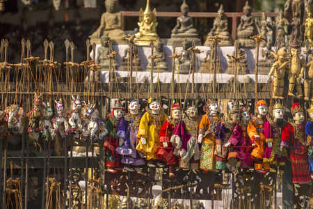 Traditional handicraft puppets are sold in a market at Mandalay, Myanmar former Burma
