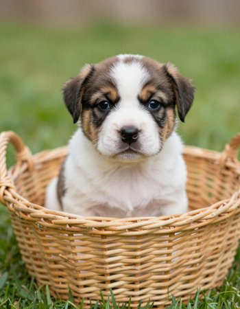 A puppy is playing in the meadow. Mammals that are commonly used as human pets have the scientific name Canis lupus familiaris.