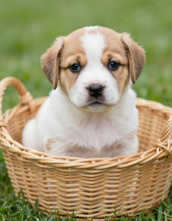 Puppet little Brown White dog Sitting in the garden, cute dog, happy dog