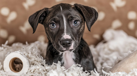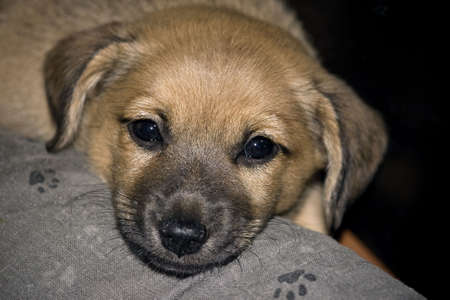 Adorable close-up portrait of a small puppy with expressive eyes and fluffy fur, evoking warmth and affection.