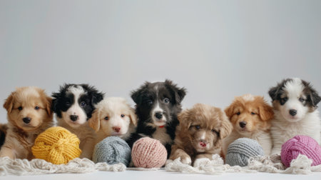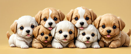 fluffy spring puppies illustration joyful wagging, tails ears, group shot fluffy spring puppies