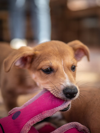 Jack Russell Terrier puppy playing with a toy. Selective focus.