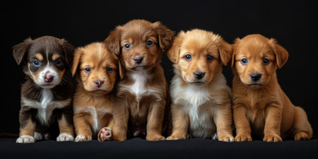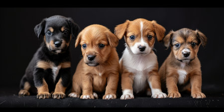 Group of cute puppies isolated on black background. Studio shot. Black background.